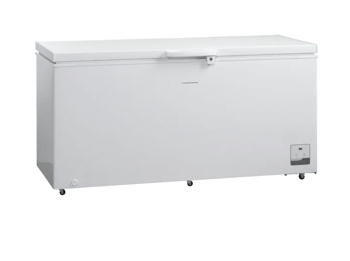 CF500WE er hvid på ydersiden med udvendig hbreath. Når fryseren er lukket, giver den også en ekstra og god arbejdsplads med det holdbare vippelåg.