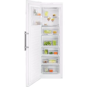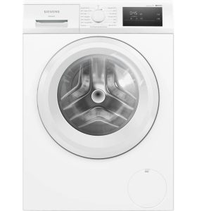 Kombineret køle-/fryseskab fra Siemens med låger i rustfrit stål easyClean, sidevægge i perlegrå og integreret lodret håndtag. Læs hele beskrivelsen