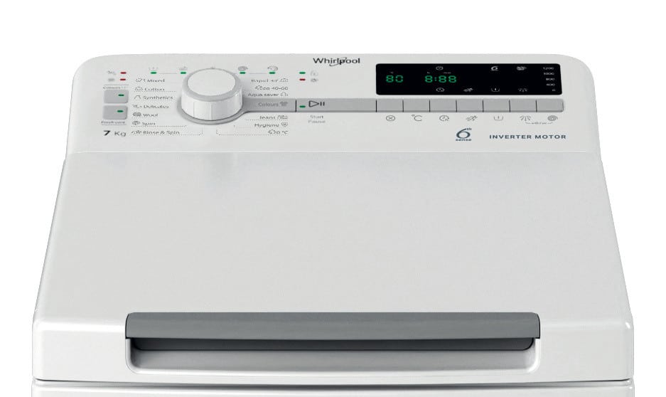 Kompakt, topbetjent Whirlpool vaskemaskine på 40 cm bredde med 7 kg kapacitet og op til 1200 o/min. 6th Sense optimerer forbrug, FreshCare holder tøjet friskt, og soft opening samt udskudt start øger komforten. Læs hele beskrivelsen